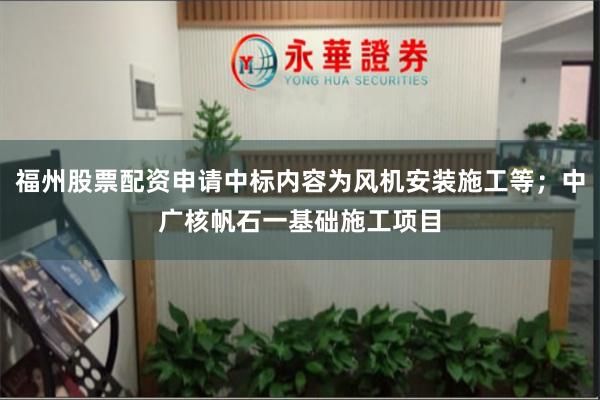 福州股票配资申请中标内容为风机安装施工等;中广核帆石一基础施工项目